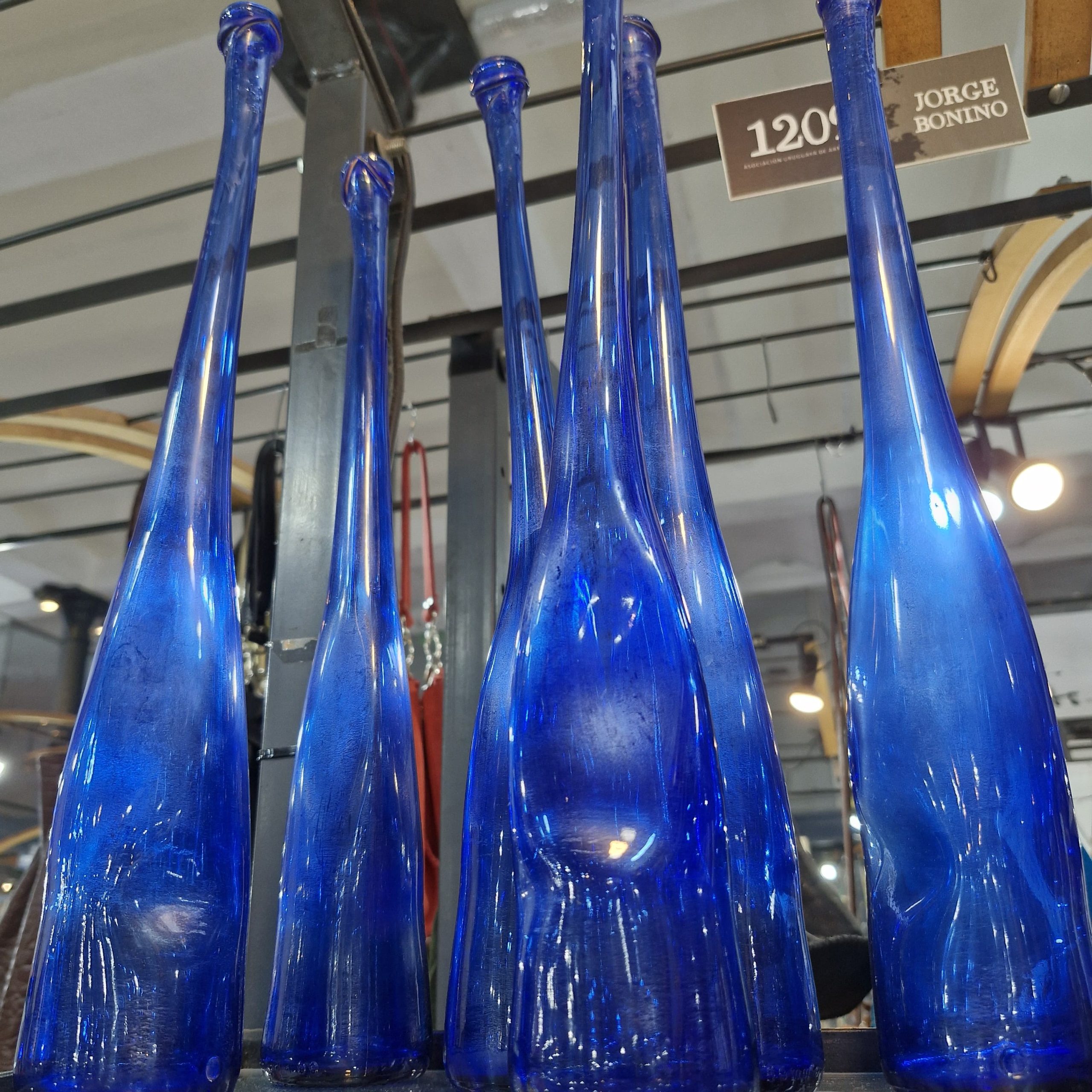 Botellas, recipientes y fuentes en vidrio. Artesano Jorge Bonino.