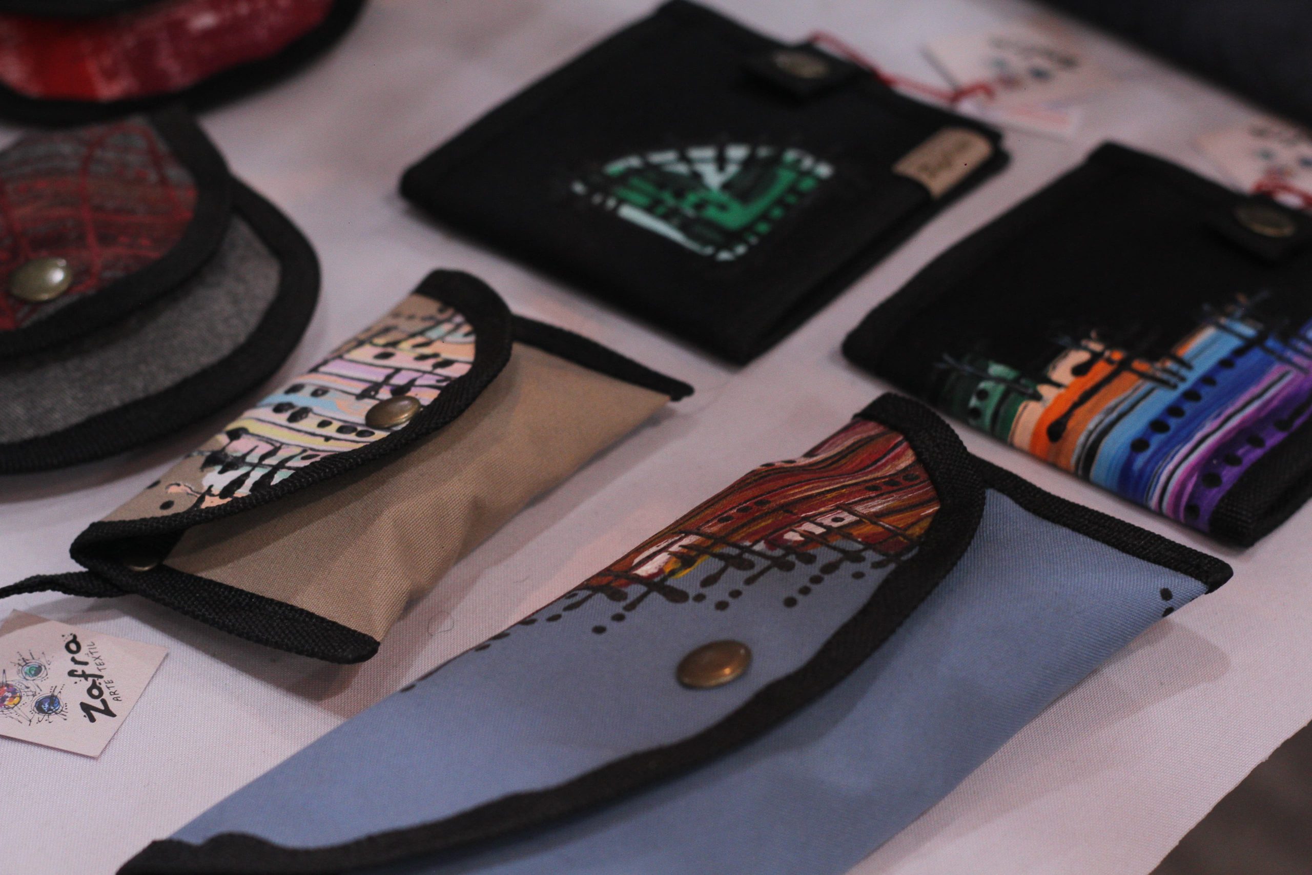 Carteras, bolsos riñoneras, billeteras en tela pintada. (Purse, wallet) Artesana Natalia Zafra.