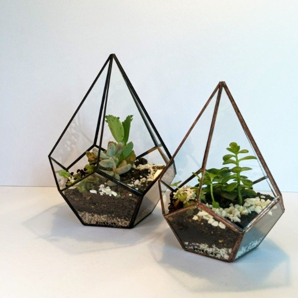 Maceteros y terrarios realizados en vidrio.