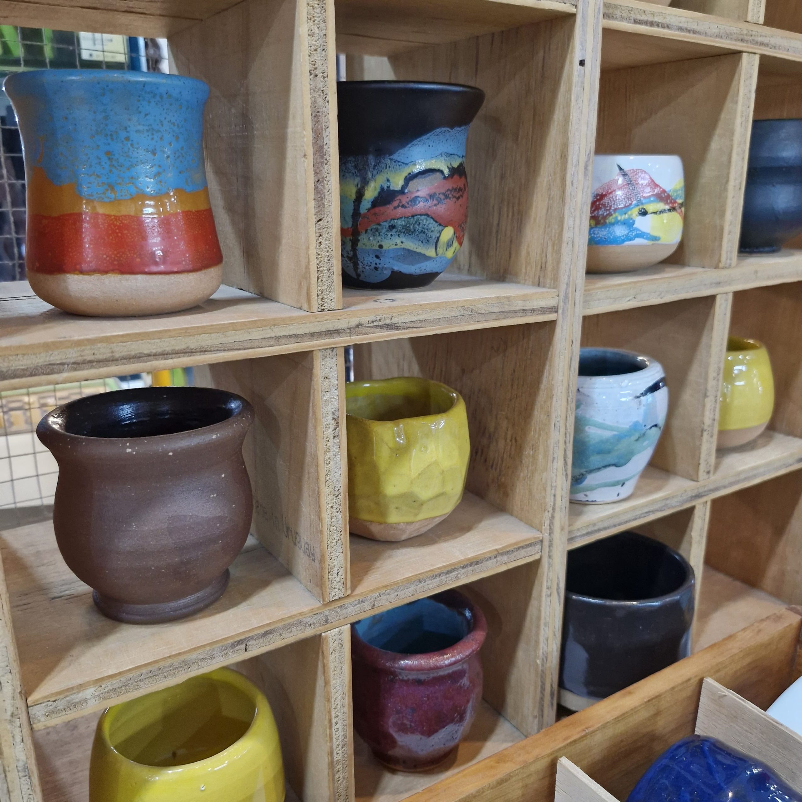 Mates, tazas, teteras, cucharones realizados en cerámica esmaltada.
